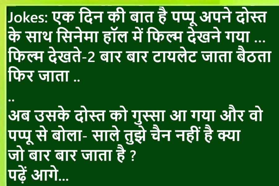 Joke 1:लड़का अपनी गर्लफ्रेंड की याद में उदास बैठा पानी में पत्थर मार रहा थातभी एक मेढ़क पानी में से निकल कर बोला- पानी में आ, तेरी उदासी उतारता हूंअपनी वाली के चक्कर में मेरी वाली का सि...