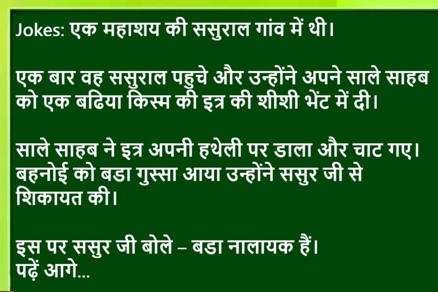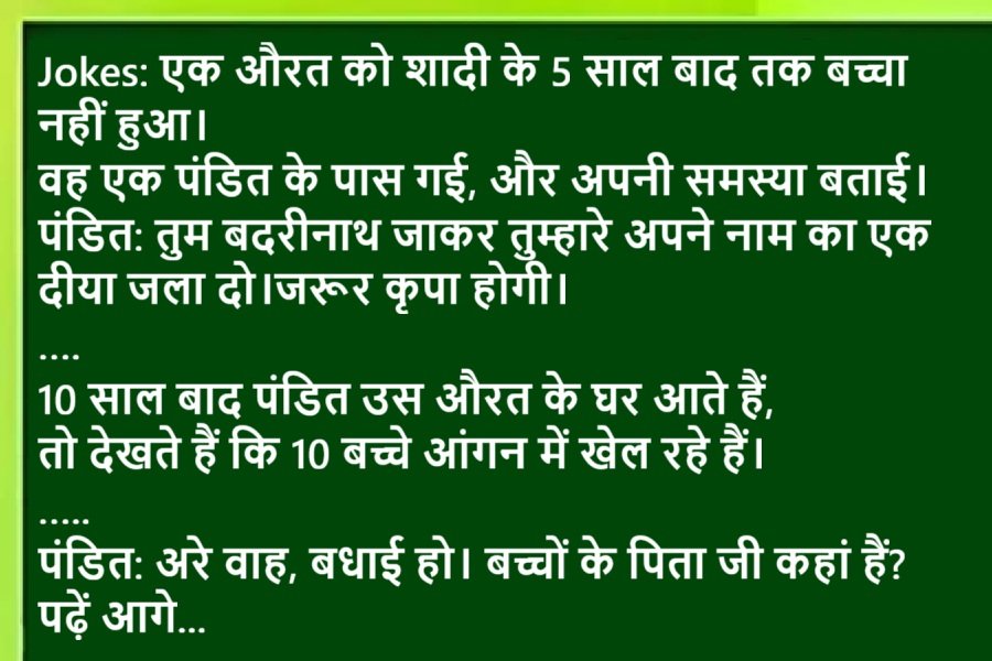 Joke 1:अपने वकील पति से पत्नी ने कहा – ए जी , फ्रिज और टी.वी कब लीजिएगा ?पडोसन के यहां दोनों चीजें हैं।.वकील पति – ने मुस्कराकर जवाब दिया – कुछ दिन और सब्र करो।एक तलाक का मुकदमा हाथ में हैं।जैसे ही उन...
