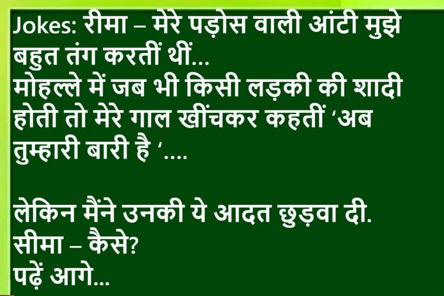 Jokes: रीमा- मेरे पड़ोस वाली आंटी मुझे बहुत तंग करतीं थीं, मोहल्ले में जब भी किसी लड़की की शादी होती तो.. पढ़ें आगे