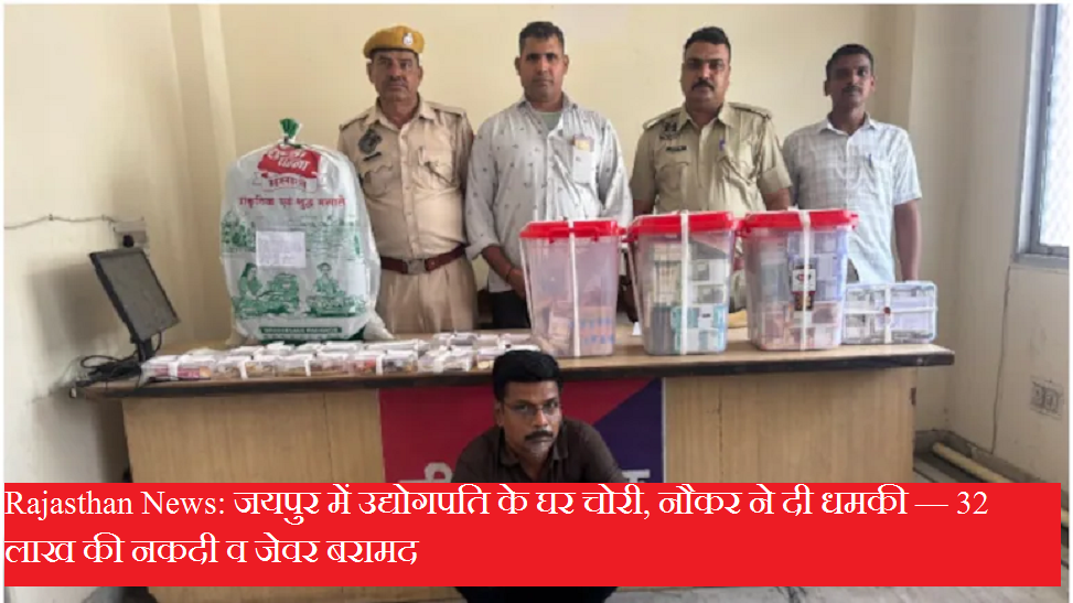 Rajasthan News: जयपुर में उद्योगपति के घर चोरी, नौकर ने दी धमकी — 32 लाख की नकदी व जेवर बरामद