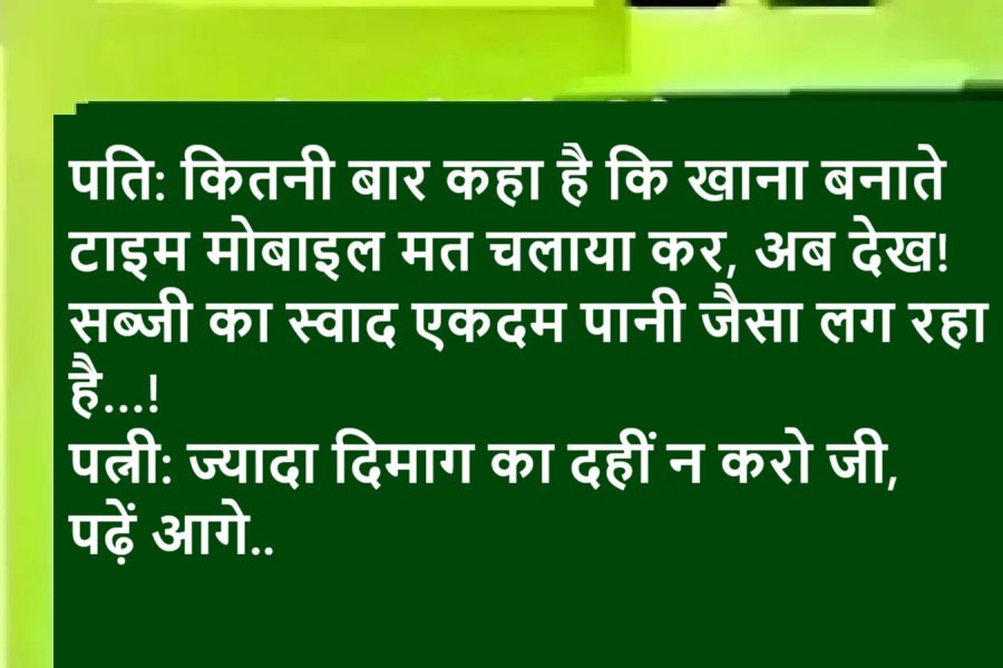 Joke 1:सास बहू से बोली : कितनी बार कहा है तुझे घर से बाहर जाओ तो बिन्दी लगाकर जाया करो। आधुनिक बहू : लेकिन माँ जी जीन्स पर बिन्दी कौन लगाता है? सास : तो मैंने कब कहा जीन्स पर लगा,म...