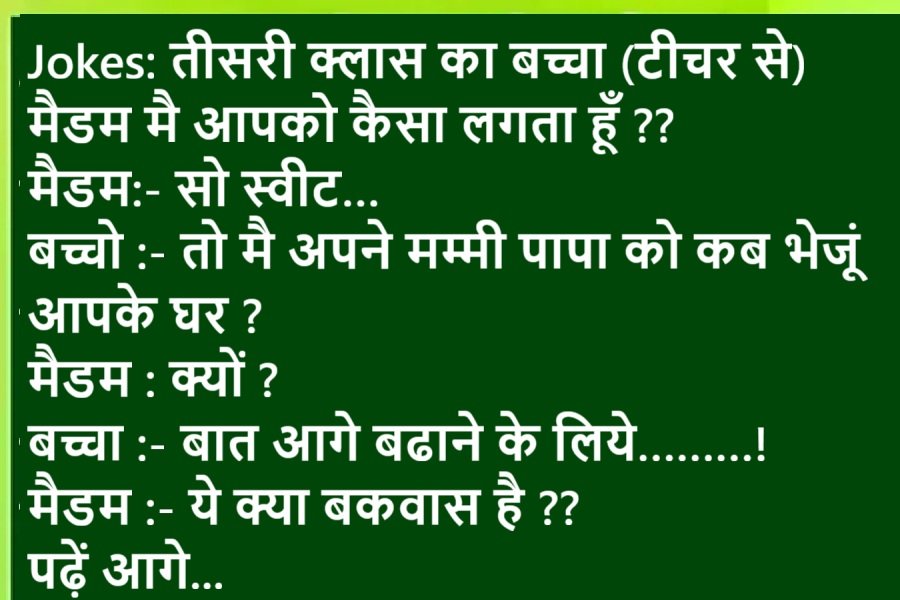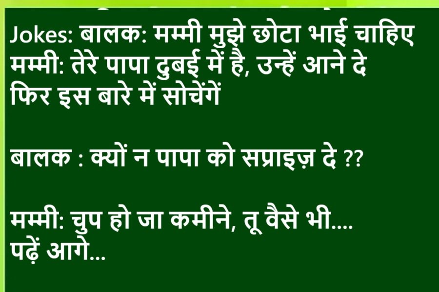 Joke 1:पति सुबह अपनी पत्नी पे पानी डाल देता हैपत्नी- (नींद में से उठती हुई गुस्से में)... पानी क्यों डाला?पति- तेरे पिता ने बोला था, दामादजी मेरी बेटी फूल की कली है, उसे मुरझाने मत देना, इसीलिए...तब स...