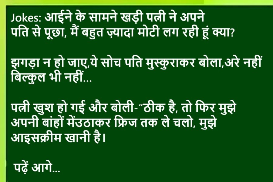 Joke 1:पति – आज खाना क्यों नहीं बनाया?पत्नी – गिर गई थी लग गई….पति – कहाँ गिर गई थी और क्या लग गई थी ?पत्नी : तकिये पर गिर गई थीऔर आँख लग गई थी।Joke 2:शक्की पत्नी का शक दूर करने के लिए,पति ने दाढ़ी रख...