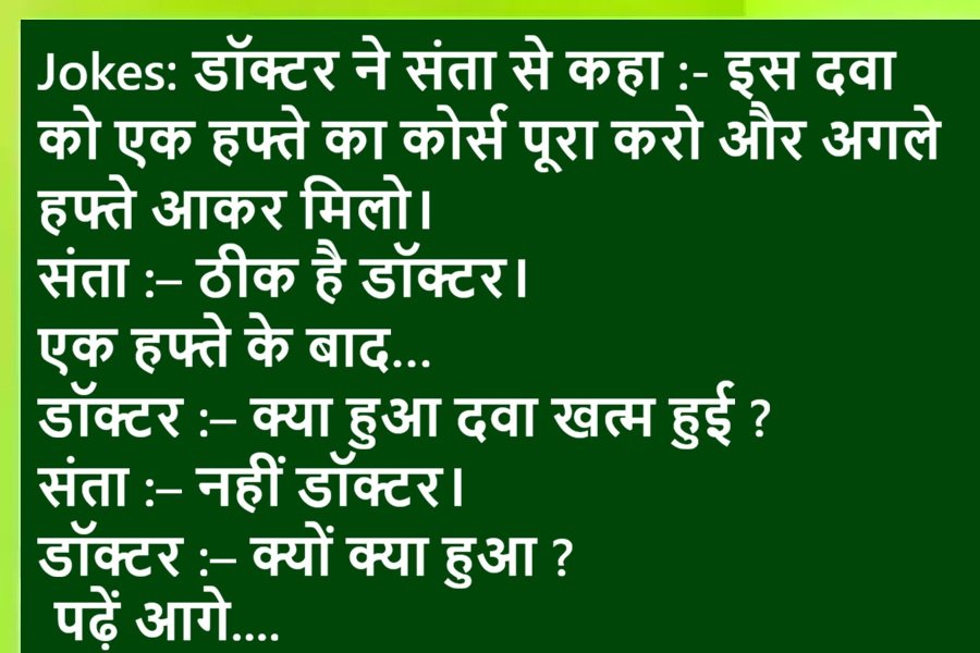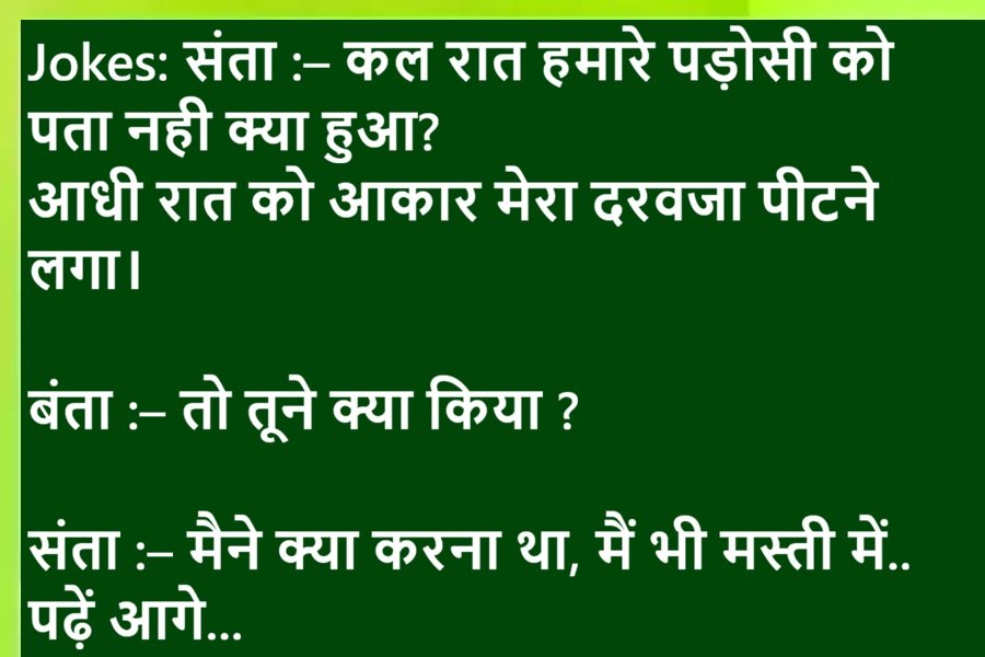 Joke 1:संता :– अपने बेटे का एडमिशन करवाने स्कूल गया।तब उसके बेटे से पूछा गया :–“what is your mother tongue ?”इसपे संता के बेटे ने उससे पूछा तो संता ने जवाब दिया :–बोल दे “वैरी लॉन्ग”Joke 2:संता परिवार...