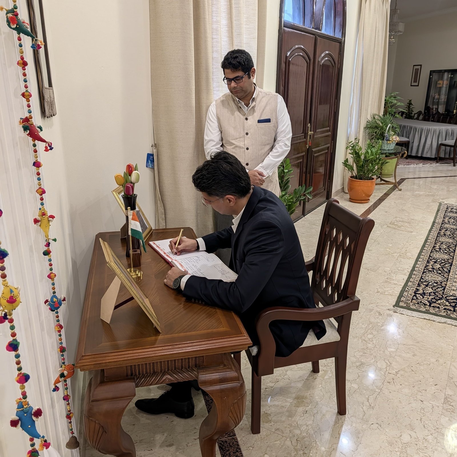 इंटरनेट डेस्क। कांग्रेस नेता और राजस्थान विधानसभा के सदस्य सचिन पायलट बहरीन की यात्रा पर है। यहां उनका भारत के राजदूत विनोद के. जैकब ने इंडिया हाउस में स्वागत किया। इस दौरान दोनों ने भारत-बहरीन रिश्तों और आपसी सहयोग को लेकर विस्तृत चर्चा की। भारतीय दूतावास ने एक्स पर पोस्ट करते हुए लिखा कि, ’राजदूत विनोद के. जैकब ने राजस्थान विधानसभा के माननीय सदस्य सचिन पायलट का गर्मजोशी से स्वागत किया।